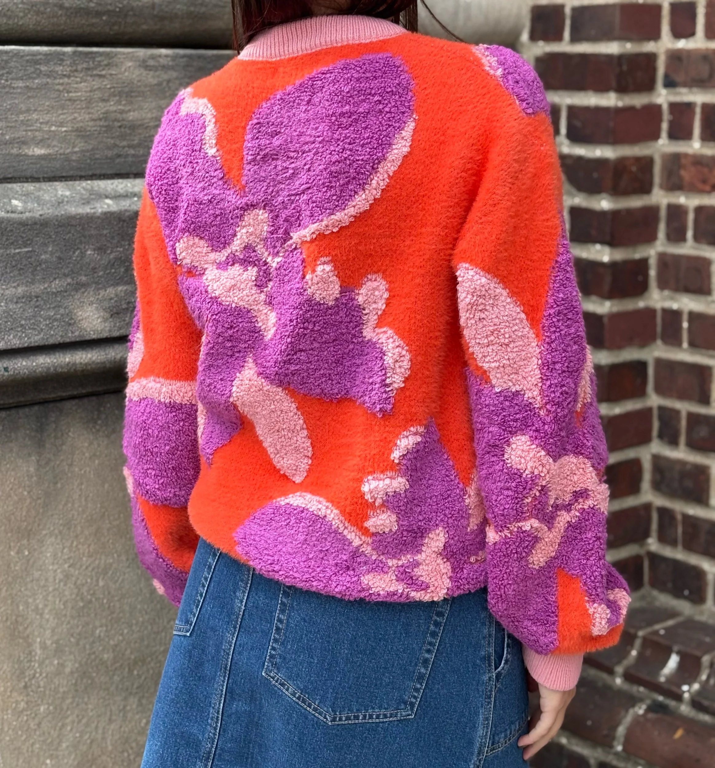 Turn heads and brighten days in this bold, textured beauty. With plush pops of pink, purple, and orange, this sweater is pure happy energy in wearable form. Cozy yet statement-making, it’s your go-to for when you want comfort and compliments. Pair it with denim, trousers, or your favorite skirt — because being warm should always look this fun.